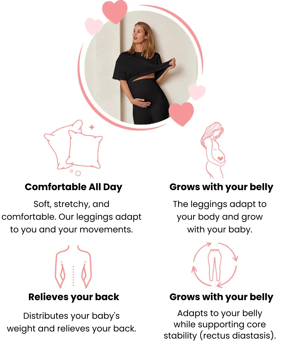 Thanks to the super stretchy material, our leggings can optimally relieve the strain on your back without constricting your stomach.